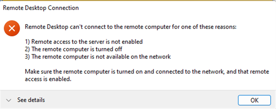Remote Desktop can't connect to the remote computer for one of these reasons: