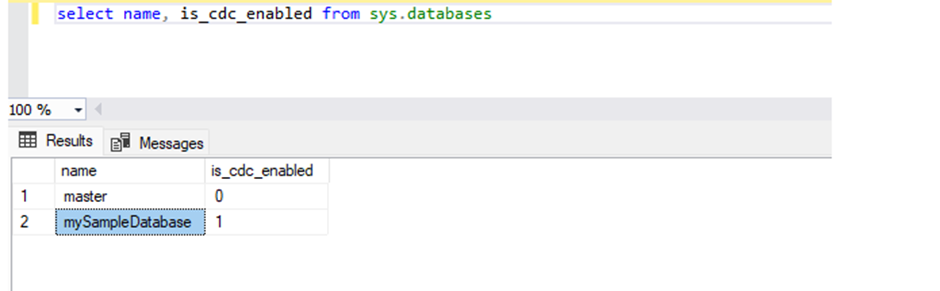 So, in the first step I checked if CDC is enabled for this database, for checking this use this following TSQL in SSMS.