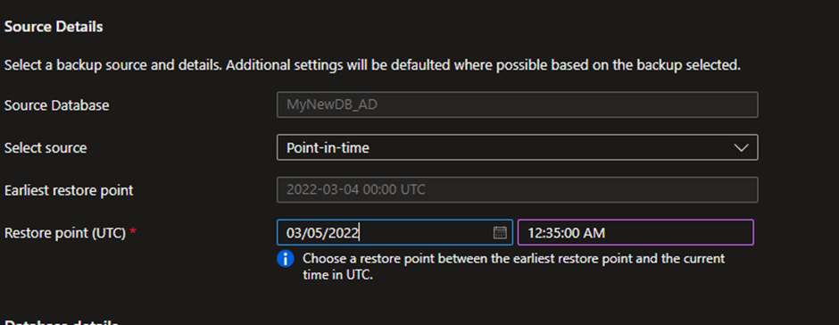 Last week when I tried to restore the SQL database with PITR I got the following error message in Azure Portal.