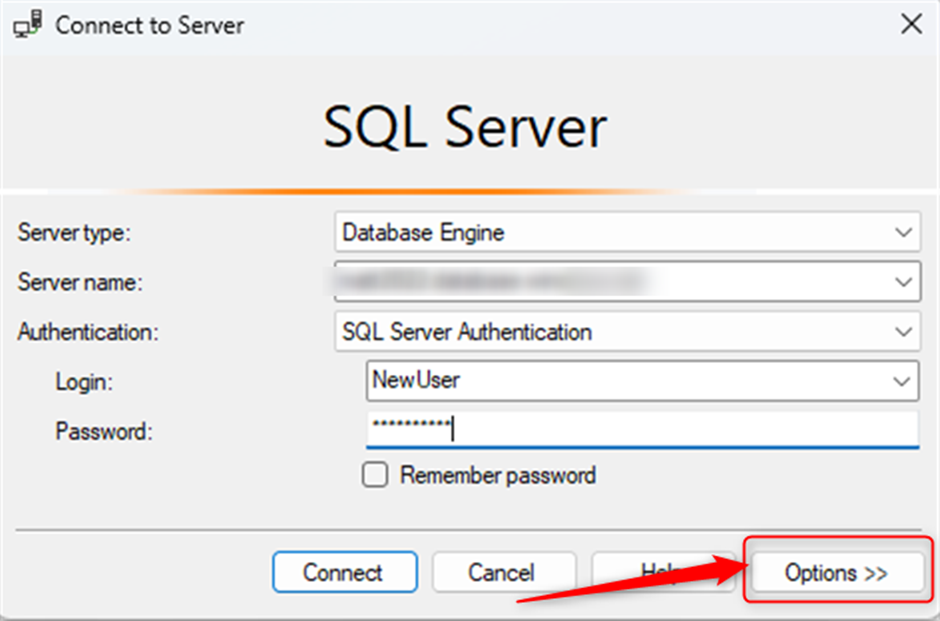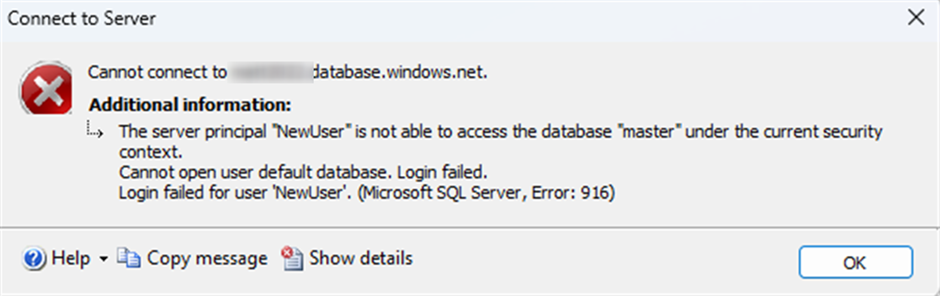 Login failed for user 'NewUser'. (Microsoft SQL Server, Error: 916)