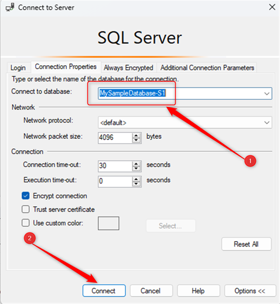You only need to ask the user when they type their username and password click on the “option” like the following screenshot then in the next page type the database name in “connect to database” then click on the connect button. Please see the following screenshots.